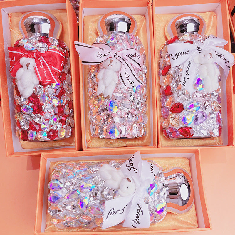 Color: white crystal bear cake towel, pink crystal bear cake towel, purplish red crystal bear cake towel, Red Crystal Bear cake towel, green crystal glasses, red crystal glasses, amethyst glasses